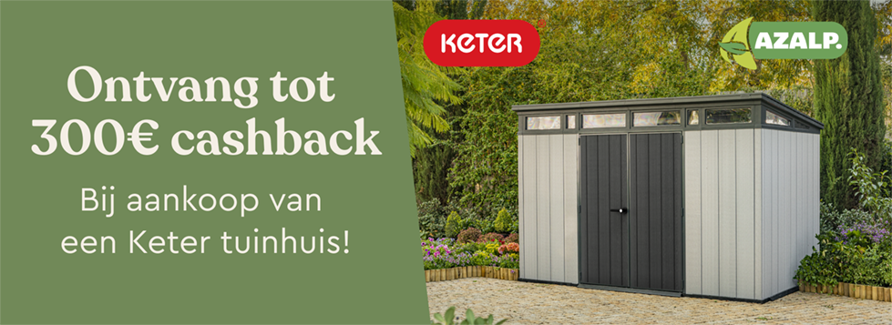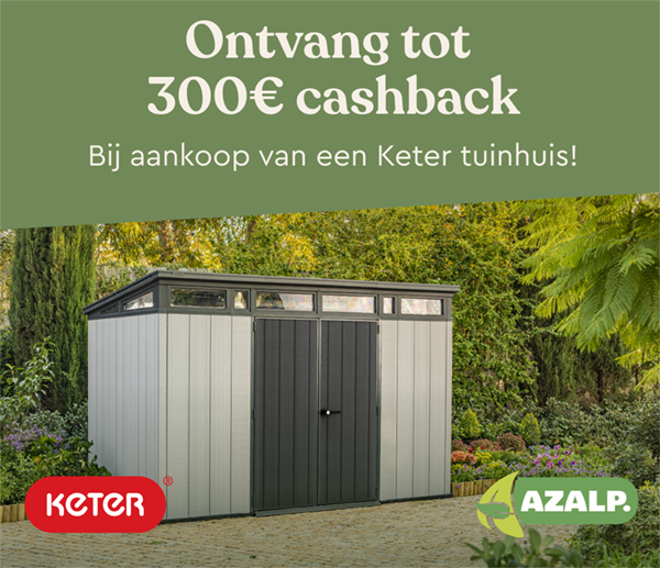 Geldig in alle Azalp winkels en op de Azalp website, bij aankoop van een Keter tuinhuis bij de deelnemende referenties*